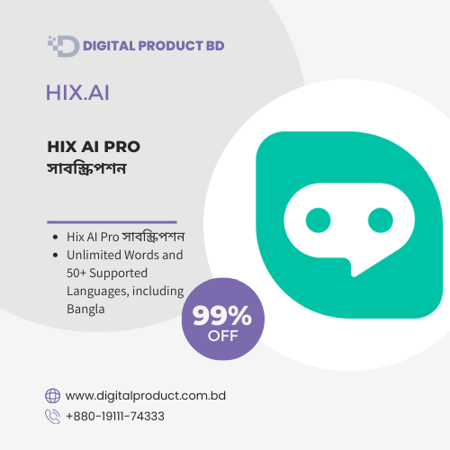 Subscriptions for HIX AI are now available at Digital Product BD for users in Bangladesh who want a smart AI workspace for writing, research, coding, chat, slides, and creative tasks. This premium tool helps students, freelancers, marketers, and professionals complete daily work faster and with better quality.